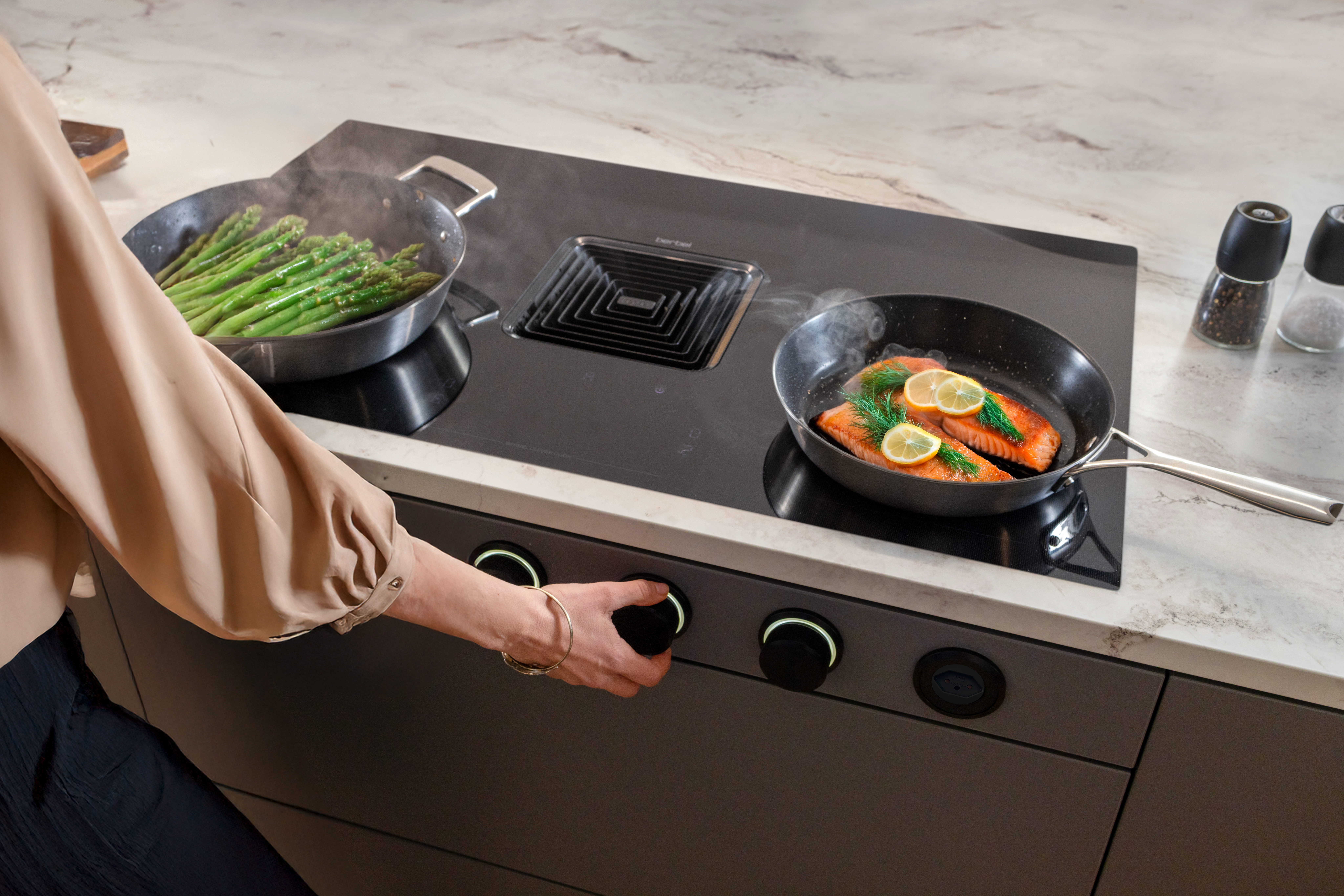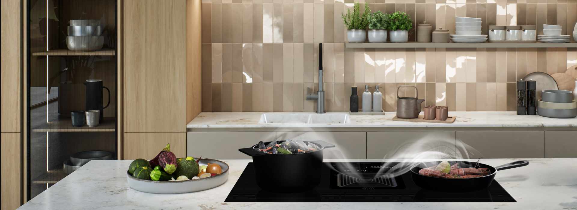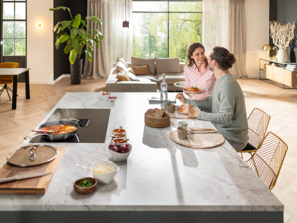 Die integrierte Absaugung direkt im Kochfeld sorgt zudem für eine freie Sicht und mehr Platz in der Küche.